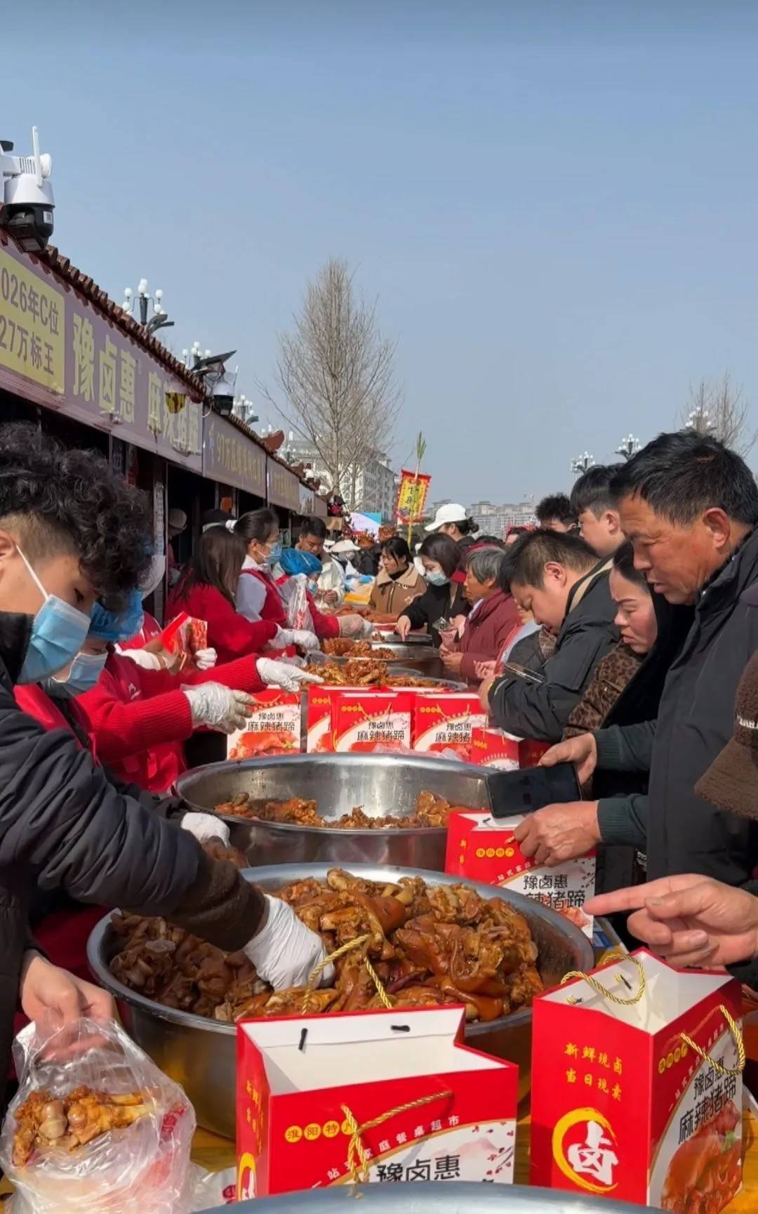 张先生表示,他的摊位有七八十名工作人员保障运营,每天各方面的成本开销在两三万元,如果想保本每天需要卖两千多只猪蹄,想盈利就要卖到三四千只。张先生称,他开创的麻辣猪蹄是淮阳本土品牌,已创立3年,在全国拥有100多家门店。此次参与摊位竞拍,初衷是为家乡太昊陵庙会做宣传,同时打造特色美食名片,助力家乡美食出圈。